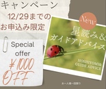 新メニューであります「星読み&ガイドアドバイス」が12/29のお申し込みまで